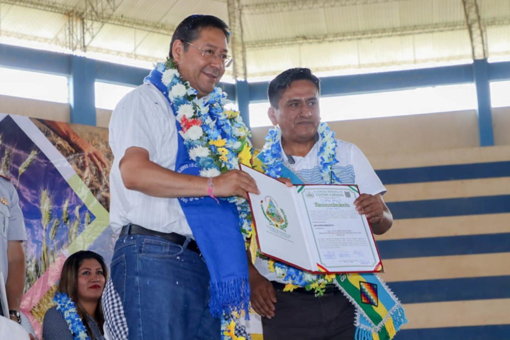 “El INSA tiene que trabajar para dar más seguridad a nuestros productores agropecuarios, porque cada vez hermanas, hermanos nos vamos a enfrentar a problemas climatológicos, hoy será la sequía mañana la helada, el recurso más escaso que vamos a ir teniendo en el planeta es el agua dulce y hay que tomar las medidas hermano Alcalde, hermanos alcaldes para poder contrarrestar lo que en siguientes años se puede venir”, expresó Arce.